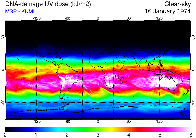 DNA-damage UV dose of 16 January 1974