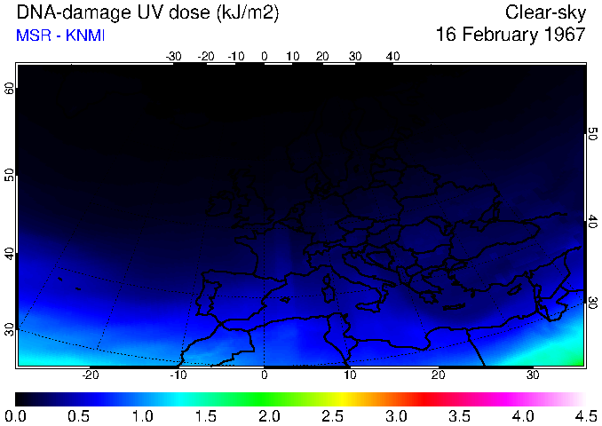 DNA-damage UV dose of 16 February 1967