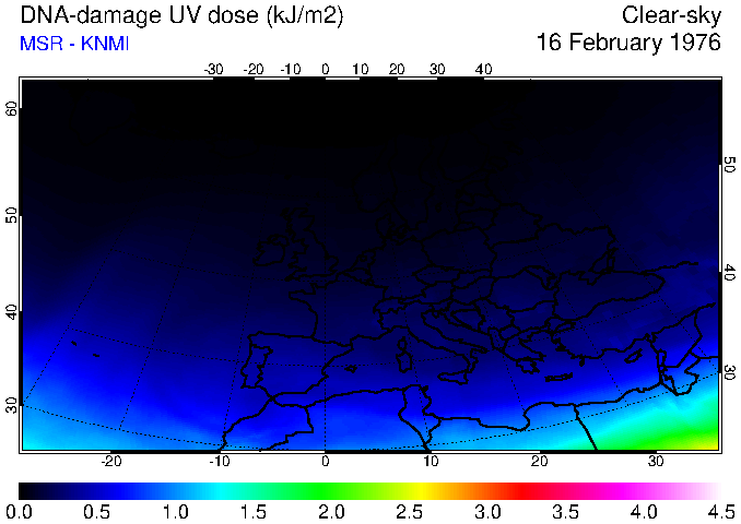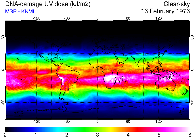 DNA-damage UV dose of 16 February 1976