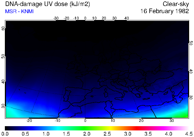 DNA-damage UV dose of 16 February 1982