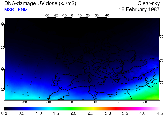 DNA-damage UV dose of 16 February 1987