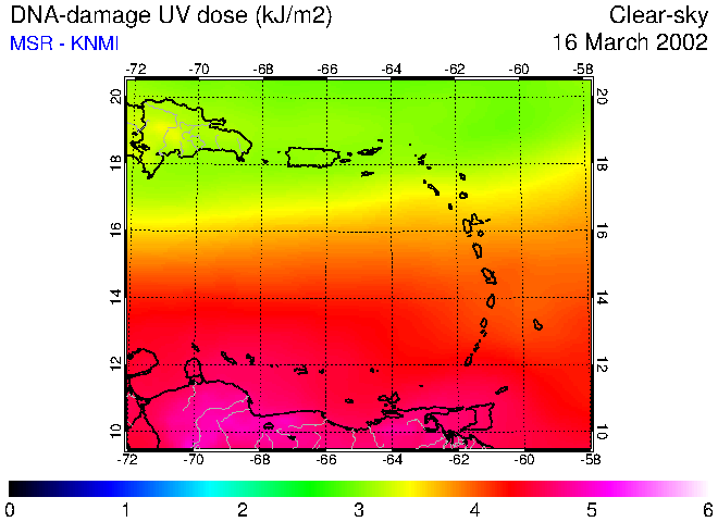 Clear-sky UV index:   erythemal