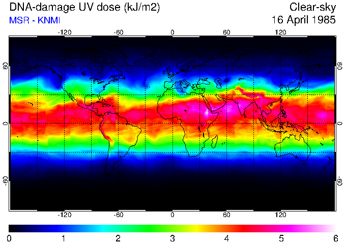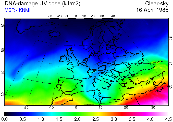 DNA-damage UV dose of 16 April 1985