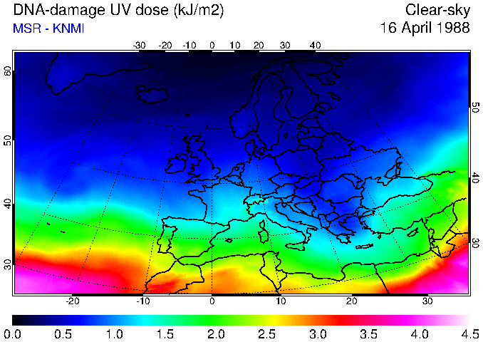 DNA-damage UV dose of 16 April 1988