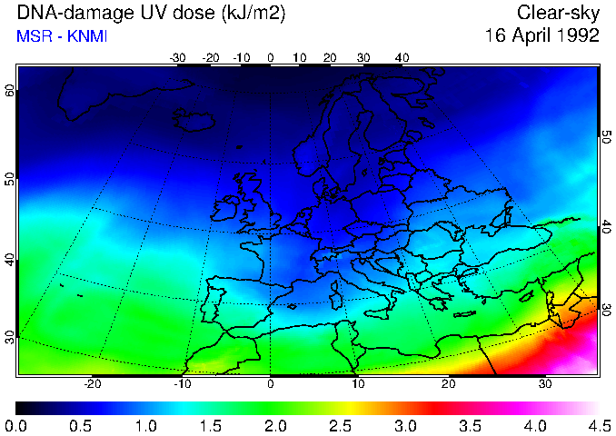 DNA-damage UV dose of 16 April 1992