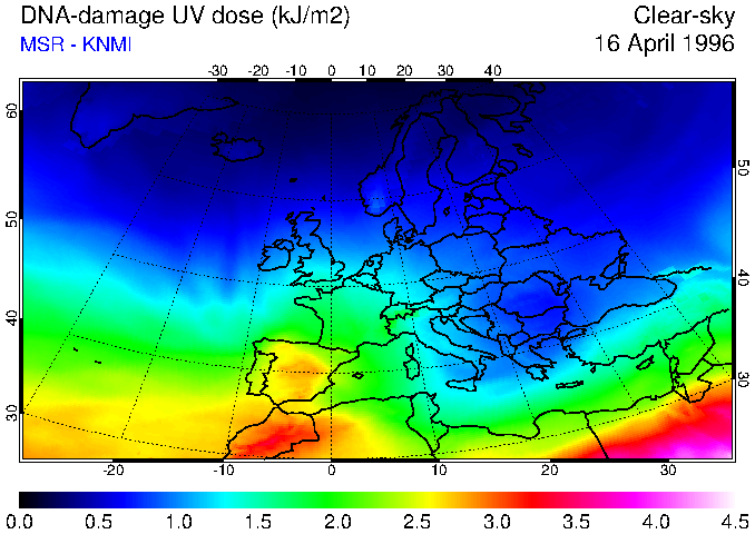 DNA-damage UV dose of 16 April 1996