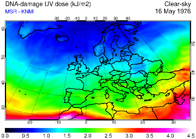 DNA-damage UV dose of 16 May 1976