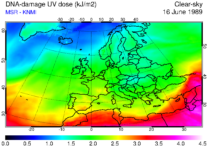 DNA-damage UV dose of 16 June 1989