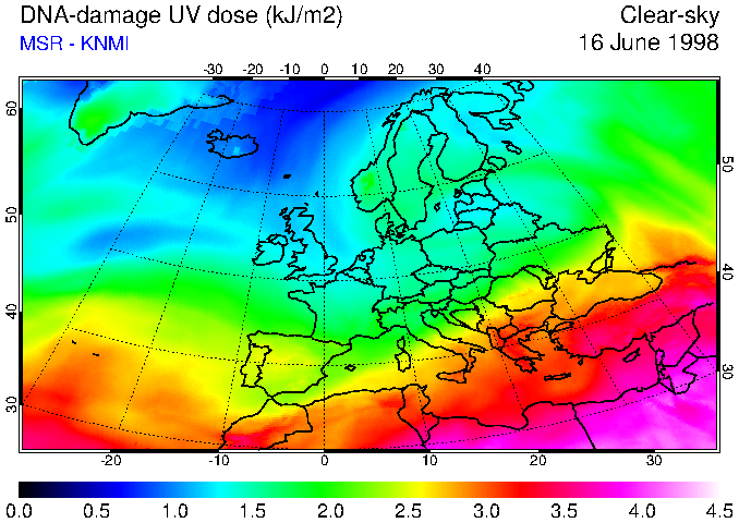 DNA-damage UV dose of 16 June 1998