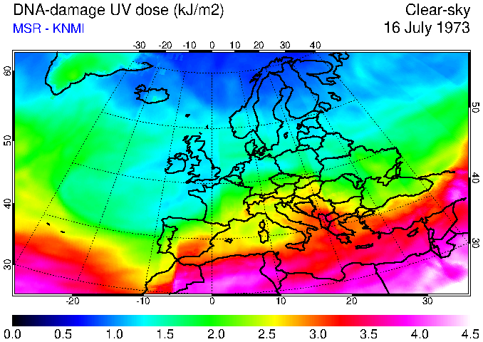 DNA-damage UV dose of 16 July 1973