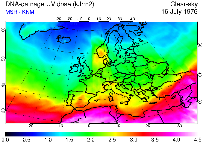 DNA-damage UV dose of 16 July 1976
