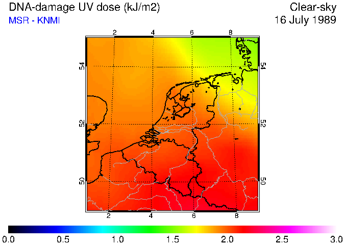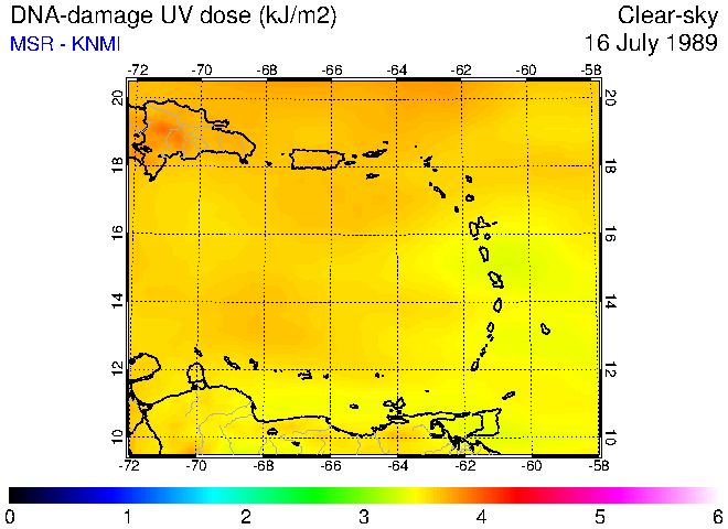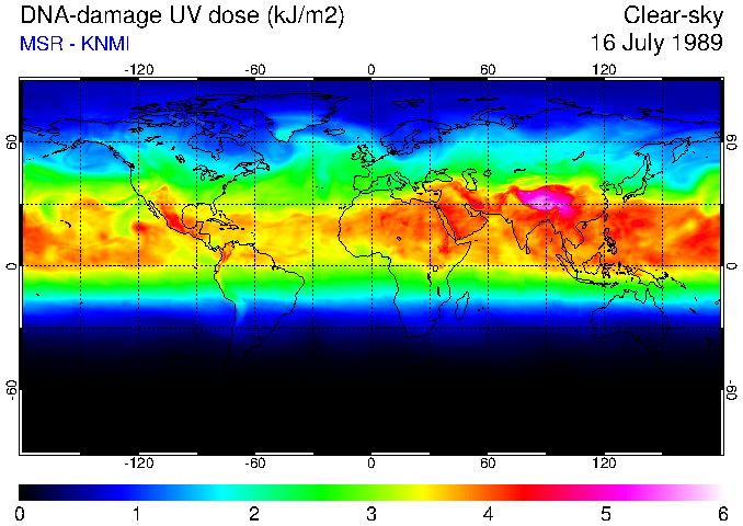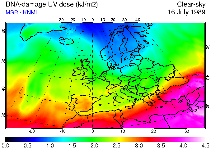 DNA-damage UV dose of 16 July 1989