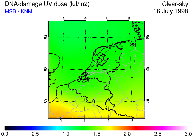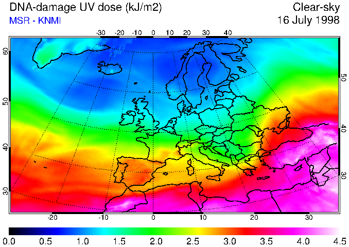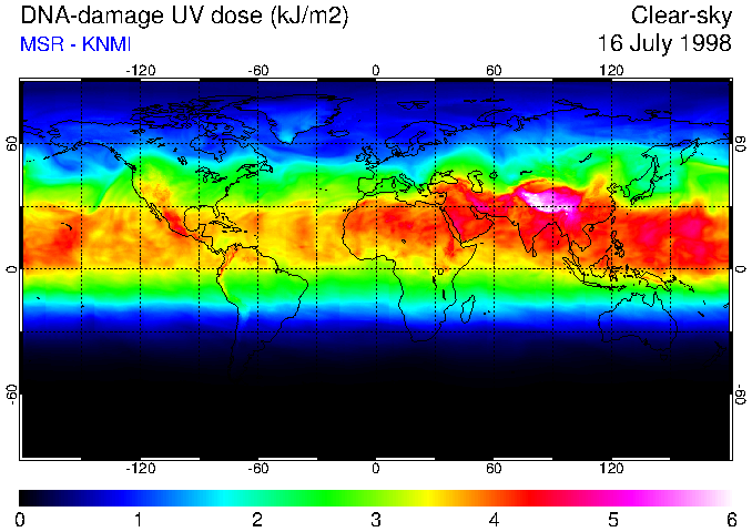 DNA-damage UV dose of 16 July 1998