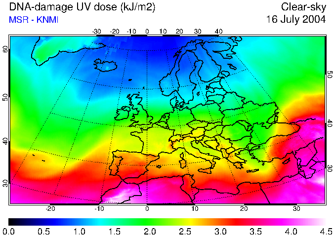 DNA-damage UV dose of 16 July 2004