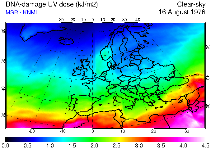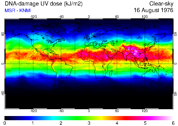 DNA-damage UV dose of 16 August 1976