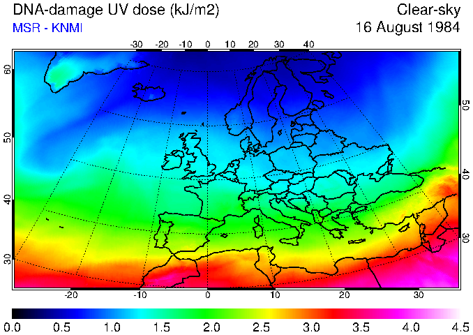 DNA-damage UV dose of 16 August 1984
