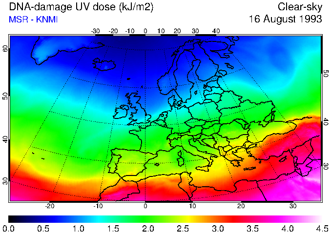 DNA-damage UV dose of 16 August 1993