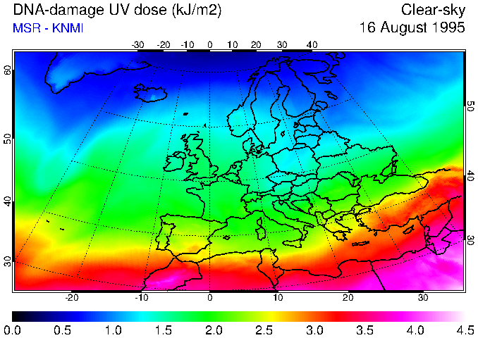DNA-damage UV dose of 16 August 1995
