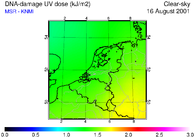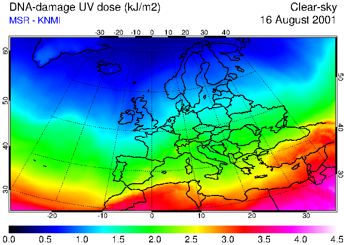 DNA-damage UV dose of 16 August 2001