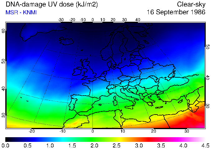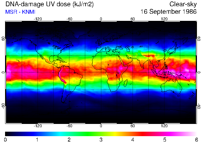 DNA-damage UV dose of 16 September 1986