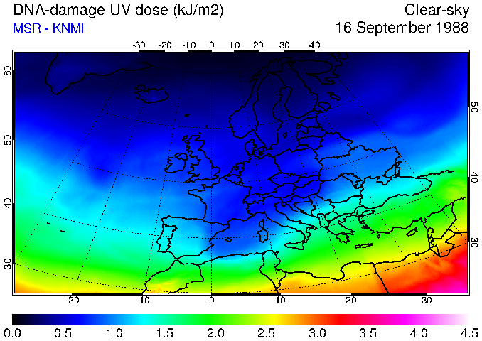 DNA-damage UV dose of 16 September 1988