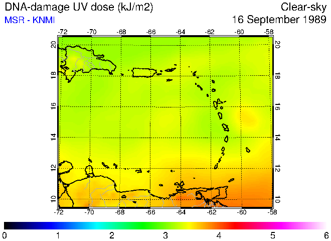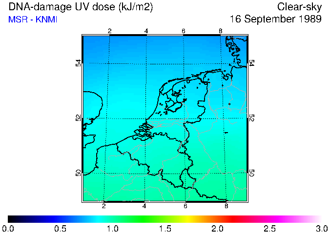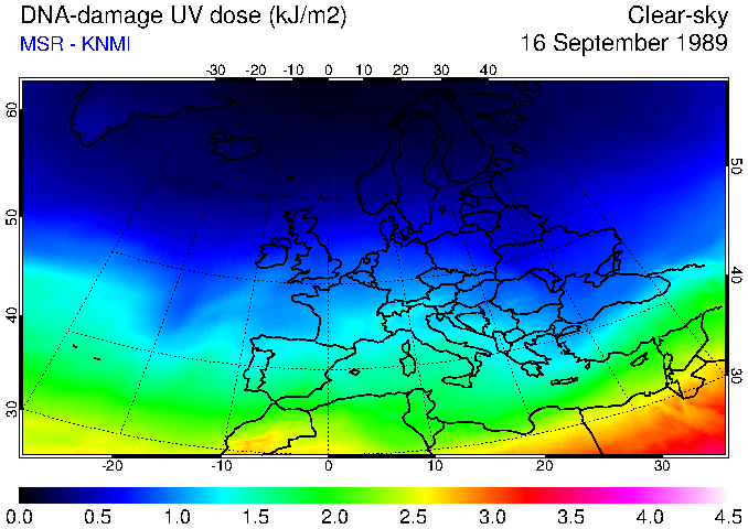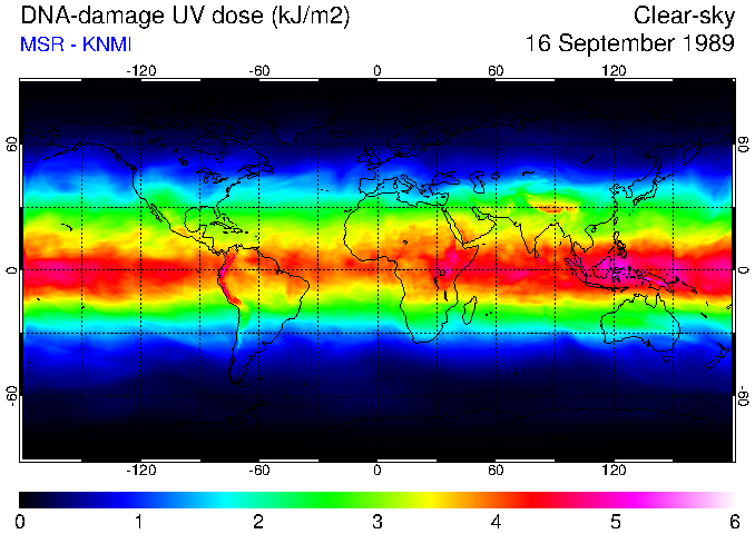DNA-damage UV dose of 16 September 1989