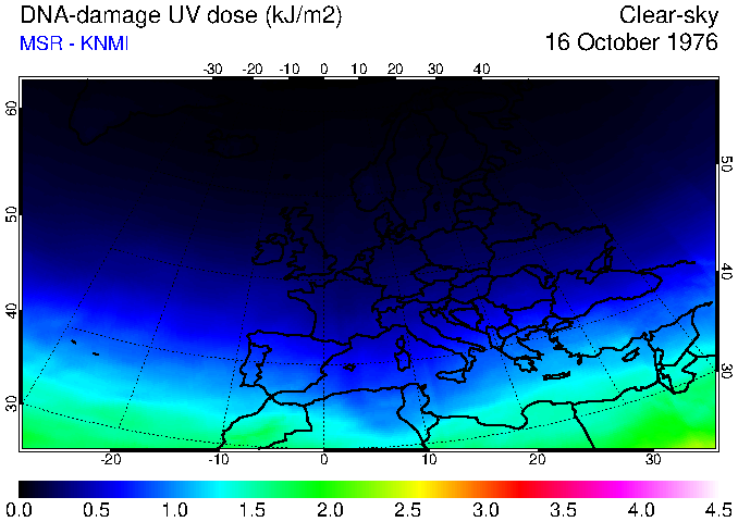 DNA-damage UV dose of 16 October 1976