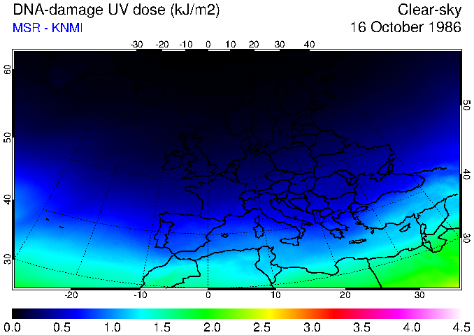 DNA-damage UV dose of 16 October 1986