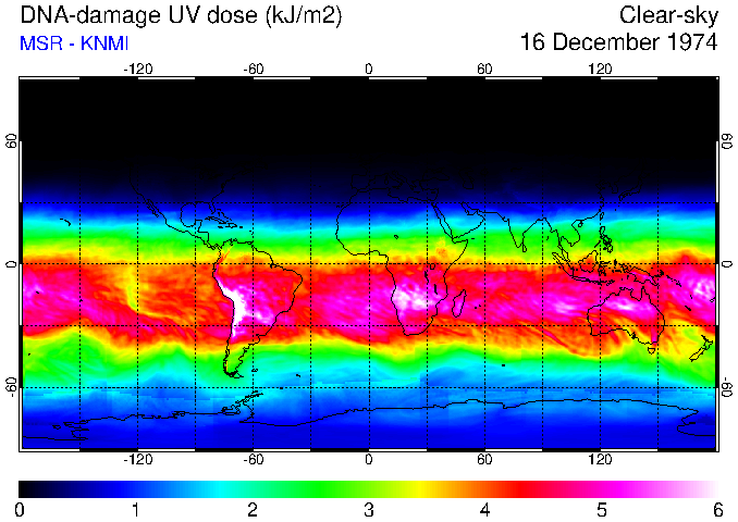 DNA-damage UV dose of 16 December 1974