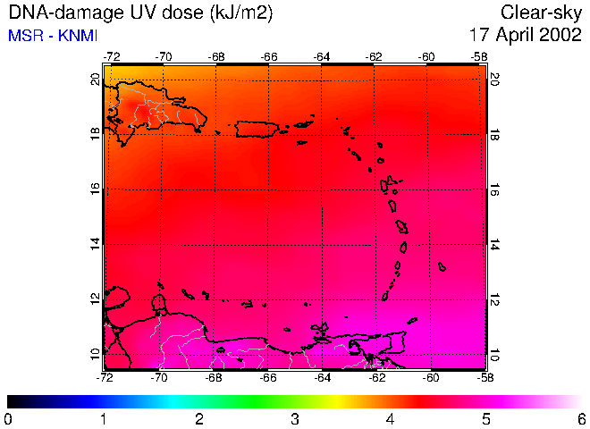 Clear-sky UV index:   erythemal