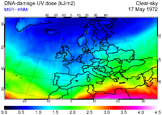 Daily UV dose:   erythemal  |  vitamin-D  |  DNA-damage