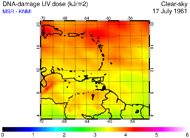 Clear-sky UV index:   erythemal