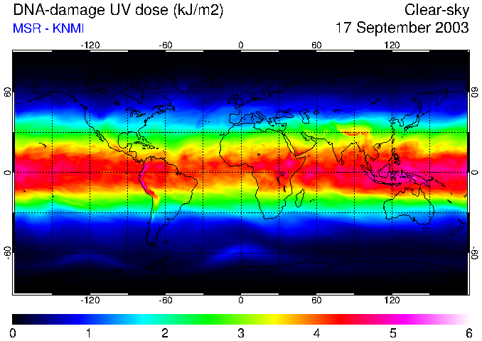 Daily UV dose:   erythemal  |  vitamin-D  |  DNA-damage