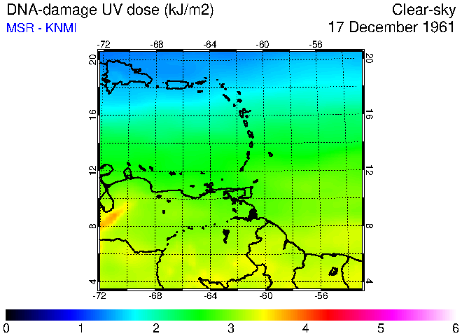 Clear-sky UV index:   erythemal