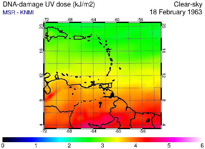 Clear-sky UV index:   erythemal