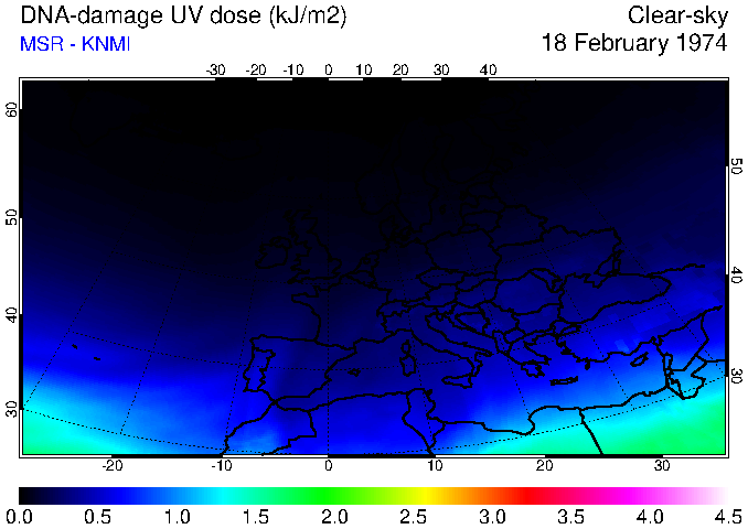 DNA-damage UV dose of 18 February 1974