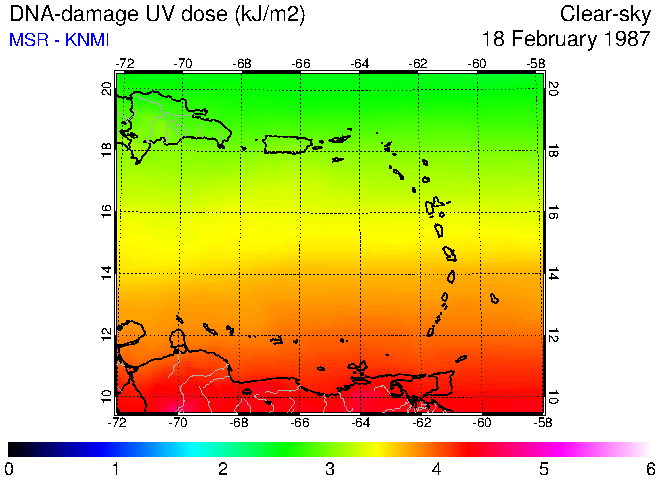 Clear-sky UV index:   erythemal