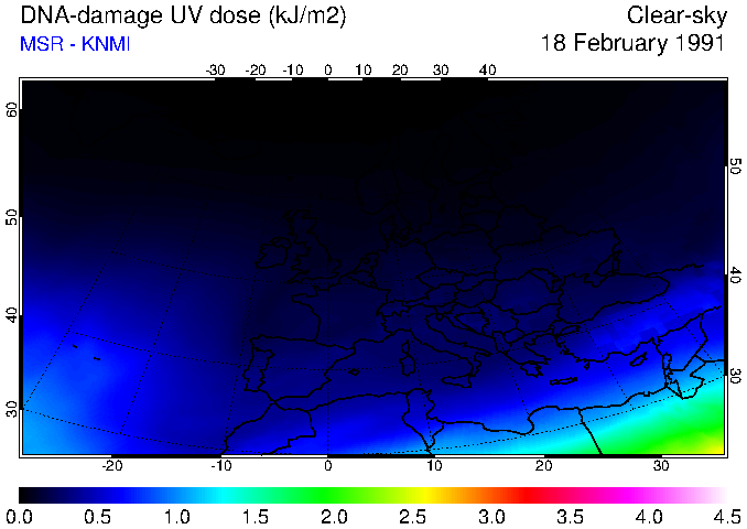 DNA-damage UV dose of 18 February 1991