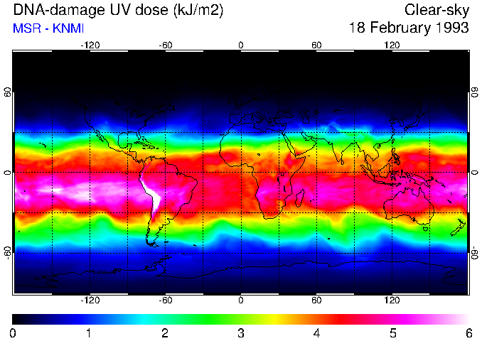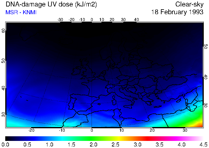 DNA-damage UV dose of 18 February 1993
