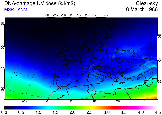 DNA-damage UV dose of 18 March 1986