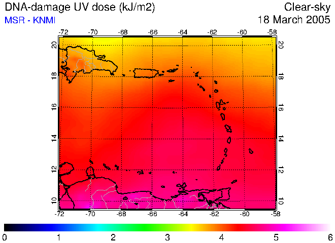 Clear-sky UV index:   erythemal