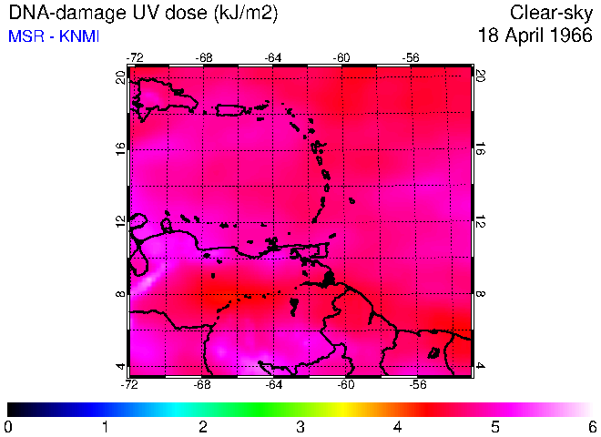 Clear-sky UV index:   erythemal