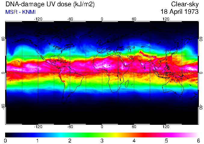 Daily UV dose:   erythemal  |  vitamin-D  |  DNA-damage