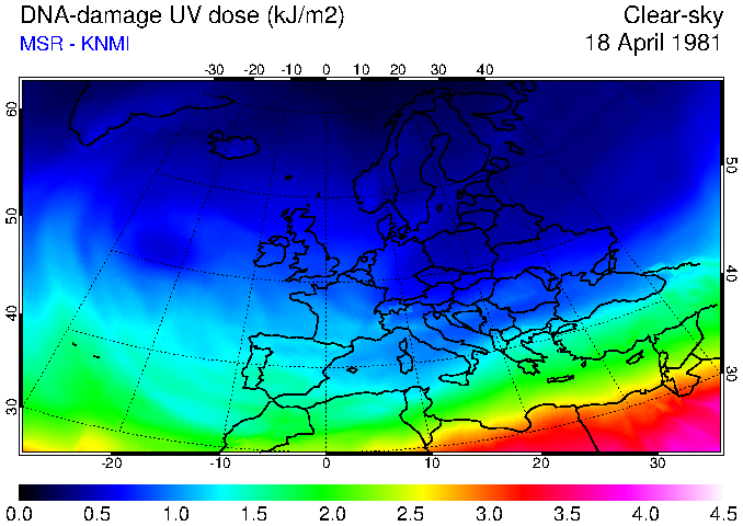 DNA-damage UV dose of 18 April 1981