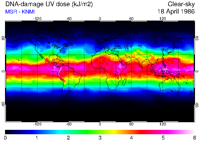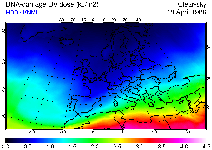 DNA-damage UV dose of 18 April 1986