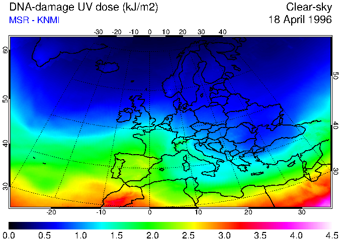 DNA-damage UV dose of 18 April 1996