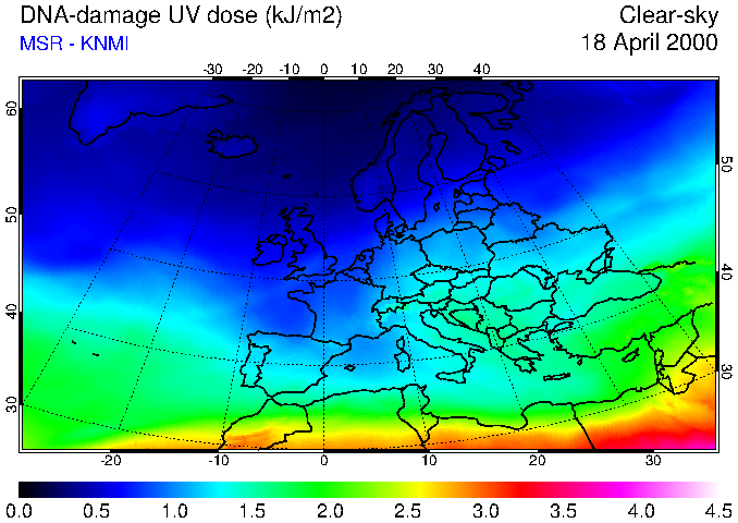 DNA-damage UV dose of 18 April 2000