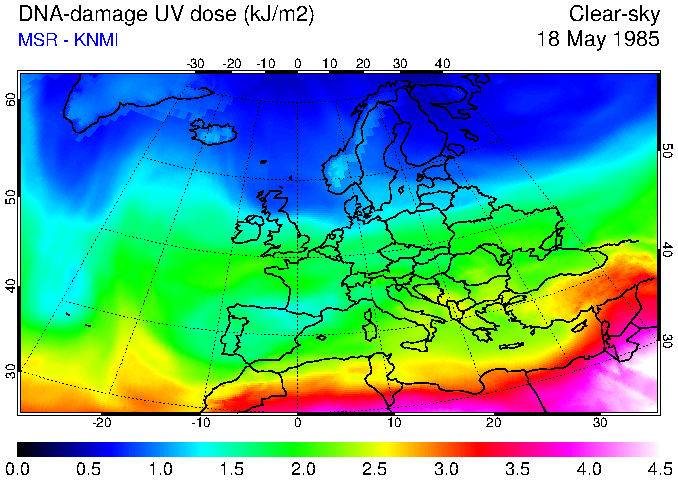 DNA-damage UV dose of 18 May 1985