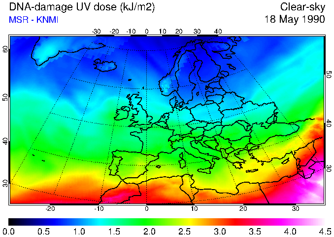DNA-damage UV dose of 18 May 1990