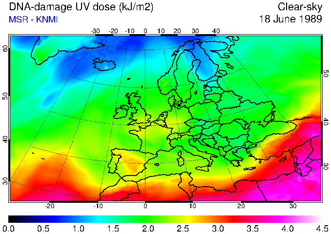 DNA-damage UV dose of 18 June 1989